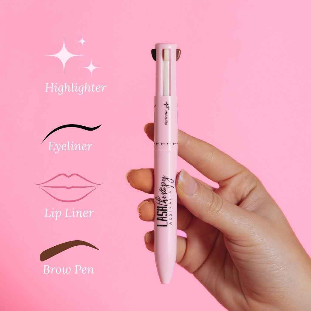 The pen includes eyeliner, eyebrow liner, lip liner, and highlighter for effortless full-face touch-ups.